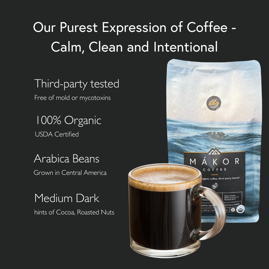 USDA Organic, Anti-inflammatory, Antioxidant Rich Coffee. 3rd party tested for Mycotoxins, Mold & Heavy Metals.