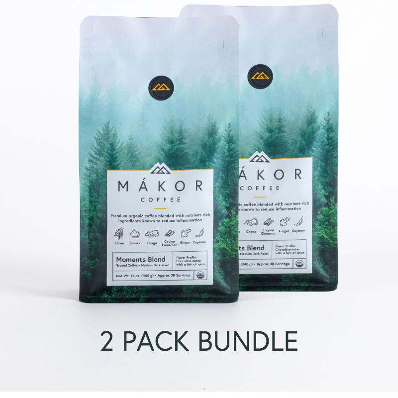 Mákor Moments Blend combines premium USDA organic ground coffee with energy boosting whole food ingredients known to fight inflammation, providing you with a gentle yet invigorating lift that supports your immune system and promotes overall well-being.