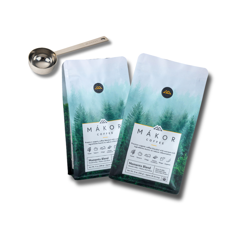 Mákor Moments Blend combines premium USDA organic ground coffee with energy boosting whole food ingredients known to fight inflammation, providing you with a gentle yet invigorating lift that supports your immune system and promotes overall well-being.